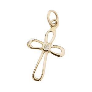 Kultainen rippiristi 13,5mm, zirkonia kivet