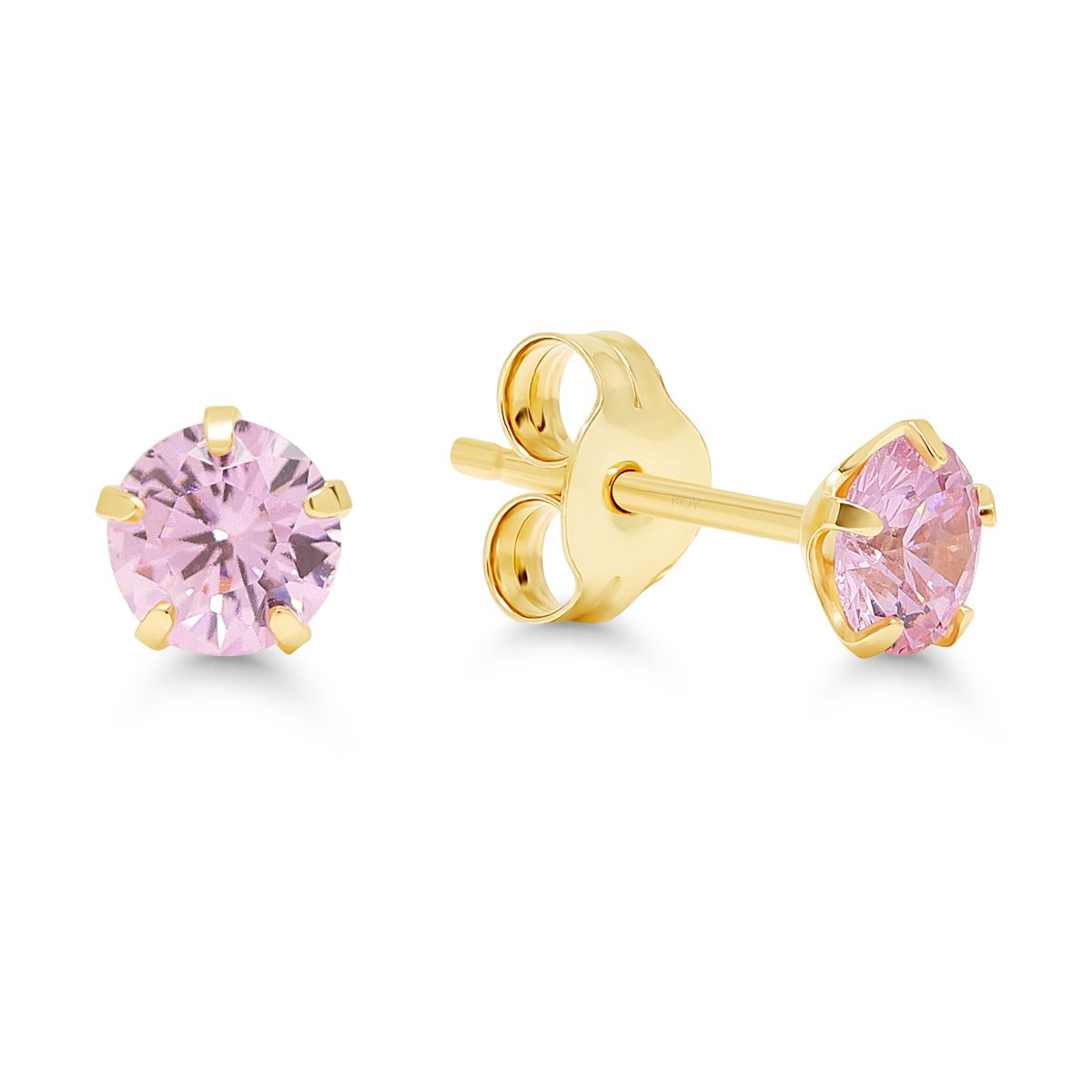 14K Keltakultaiset Vaaleanpunaiset Zirkonikorvakorut 4 mm – Ajattomat Kultanapit
