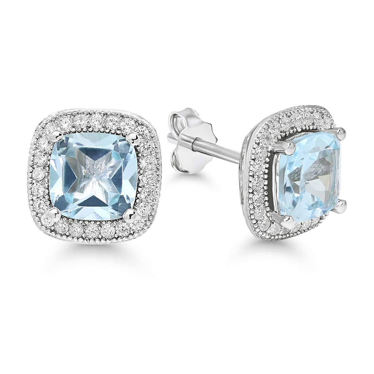 Nämä upeat Halo-hopeakorvakorut aidoilla topaaseilla tuovat asuusi klassista loistoa ja ajattoman hienostunutta säihkettä. Korujen keskellä kimmeltää kaunis, neliöksi hiottu aito topaasi, jonka jäinen vaaleansininen sävy heijastaa valoa poikkeuksellisen kauniisti.