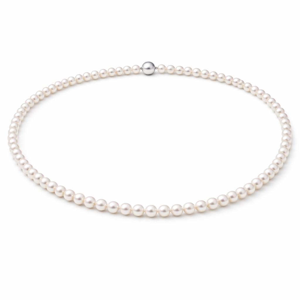 AAAA-luokiteltu helmi edustaa makeanveden helmien parhaimmistoa: jopa 95–100 % helmistä on pinnaltaan lähes virheettömiä, ja niiden kiilto on intensiivinen ja kirkas. Tämä kaulakoru heijastaa valoa pehmeästi ja elävästi, tuoden esiin helmien luonnollisen hohteen sekä kauneuden.