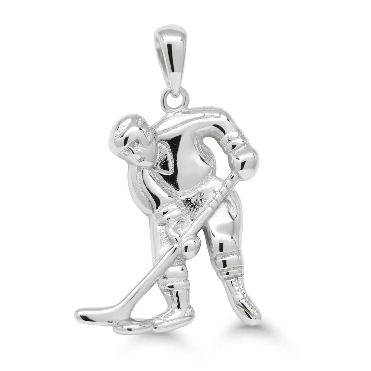 Tämä hopeinen jääkiekkoilija-riipus on täydellinen lahja intohimoiselle jääkiekon harrastajalle tai fanille. Riipus on valmistettu laadukkaasta 925 sterlinghopeasta ja rodinoitu, mikä antaa sille kestävän ja kiiltävän pinnan, samalla suojaten sitä tummumiselta. Riipus on 17 mm leveä ja 18 mm korkea (ilman riipuslenkkiä), ja kokonaiskorkeus lenkin kanssa on 25 mm.