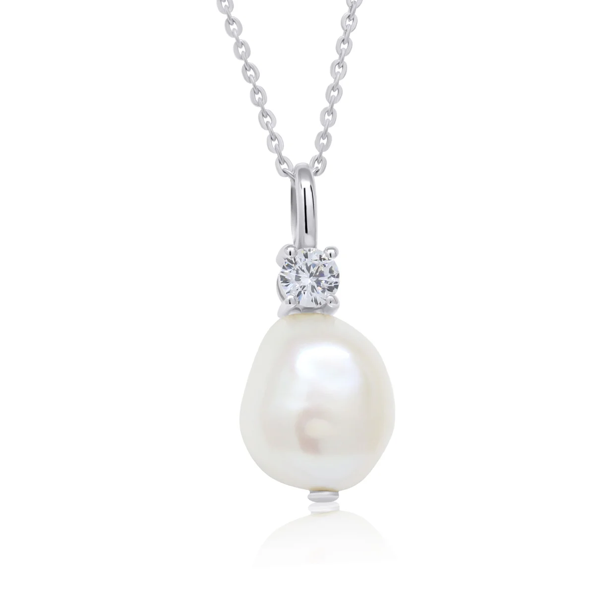 Elegantti hopeinen kaulakoru makeanveden helmellä ja kirkkaalla zirkonilla yhdistää klassisen kauneuden ja modernin yksilöllisyyden. Jokainen helmi on luonnostaan ainutlaatuisen muotoinen, mikä tekee jokaisesta korusta täysin omanlaisensa. Helmen yläpuolella säihkyvä kirkas synteettinen zirkoni tuo koruun hienovaraista kimallusta ja korostaa helmen luonnollista hohtoa.
