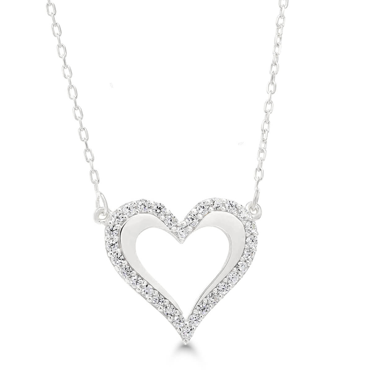 Hopeinen sydänkaulakoru zirkoneilla