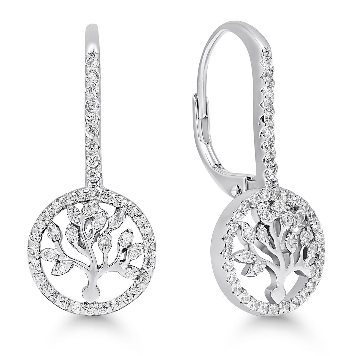 Hopeiset elämänpuu korvakorut zirkoneilla, englantilainen lukko