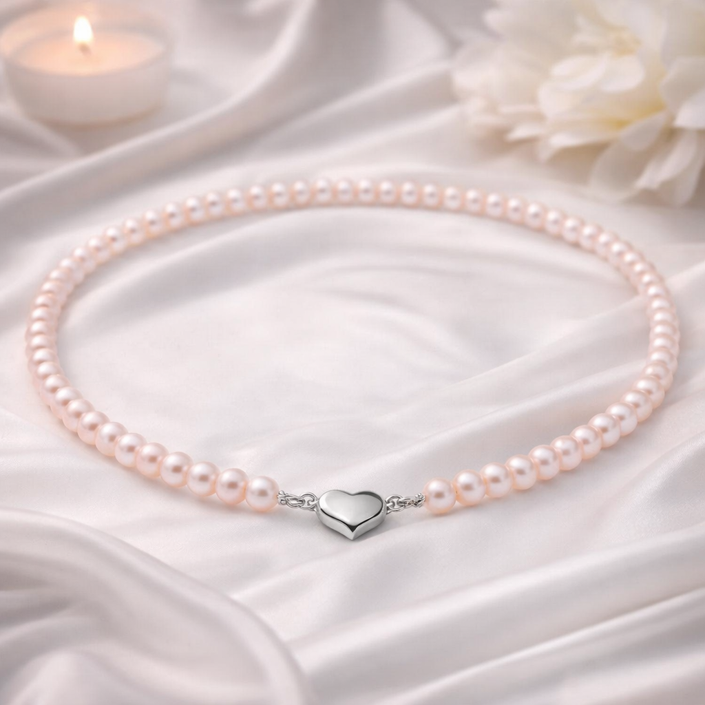 Kaunis ja herkkä kastehelminauha roosan värisillä makeanveden helmillä on perinteinen ja arvostettu kastelahja, joka säilyy muistona koko elämän ajan. Helmien suloisen pehmeä sävy yhdistyy tyylikkääseen 925 sterlinghopeasta valmistettuun sydänlukkoon, joka tuo koruun ajattomuutta ja hienostunutta juhlavuutta.