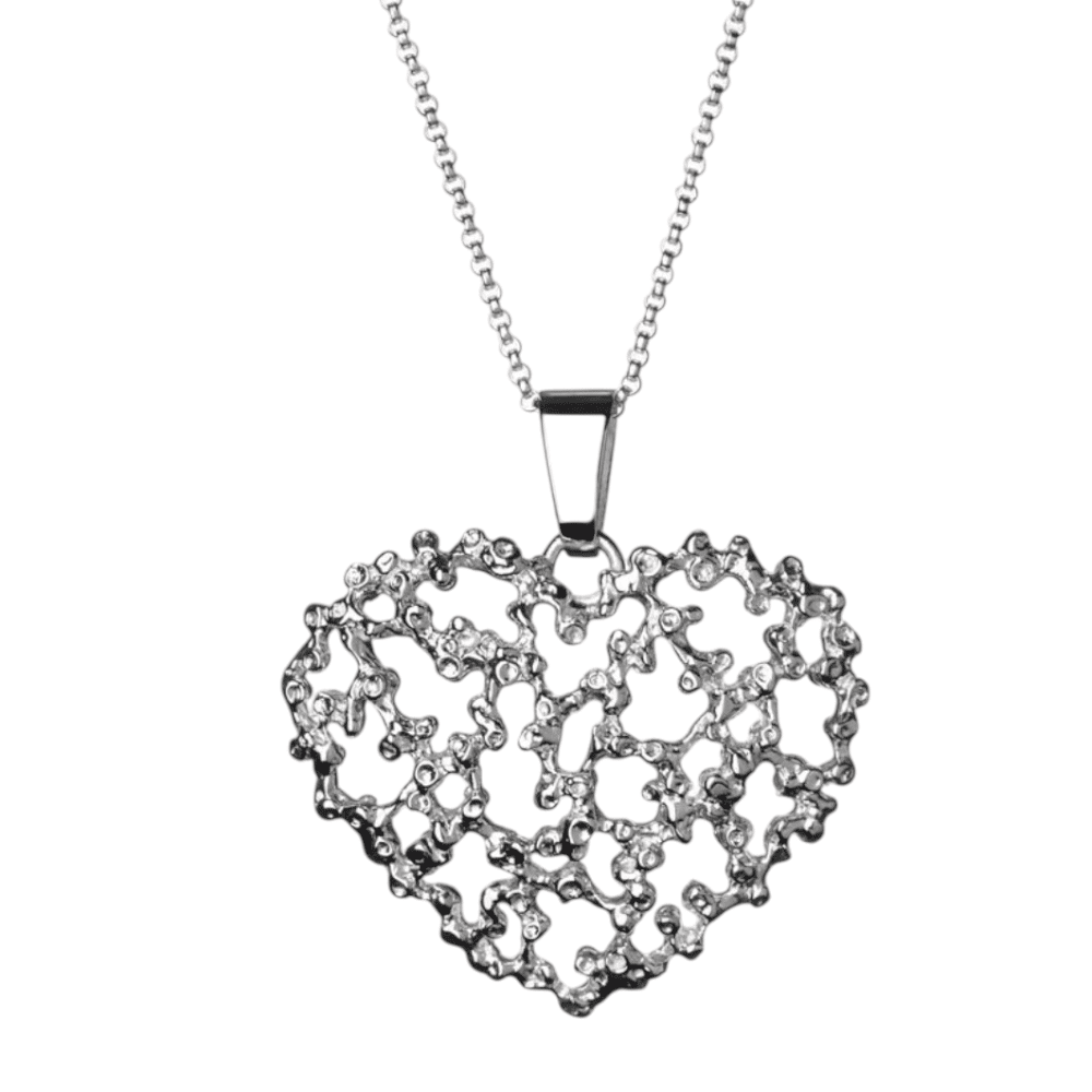 Puro Sydän -riipus L on näyttävä koru, joka yhdistää rohkean muotoilun ja herkkälinjaisen symboliikan. Sydämen muotoilu jäljittelee luonnon vesivirtojen orgaanista kauneutta, luoden ainutlaatuisen ja elävän pinnan. Tämä koru on täydellinen valinta itsensä ilmaisemiseen tai lahjaksi tärkeälle henkilölle.
