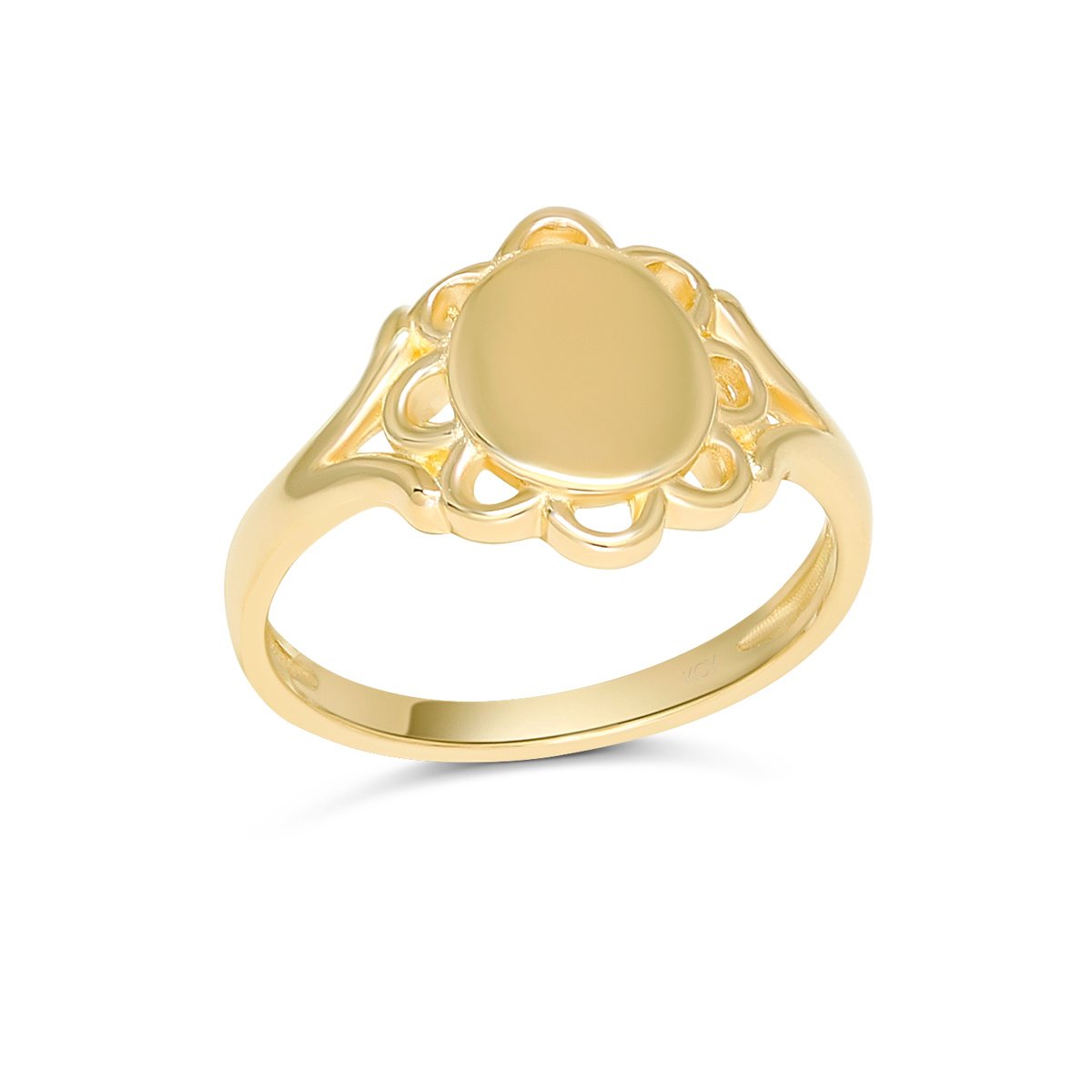 Keltakultainen ovaali laatta koristeellinen kastesormus