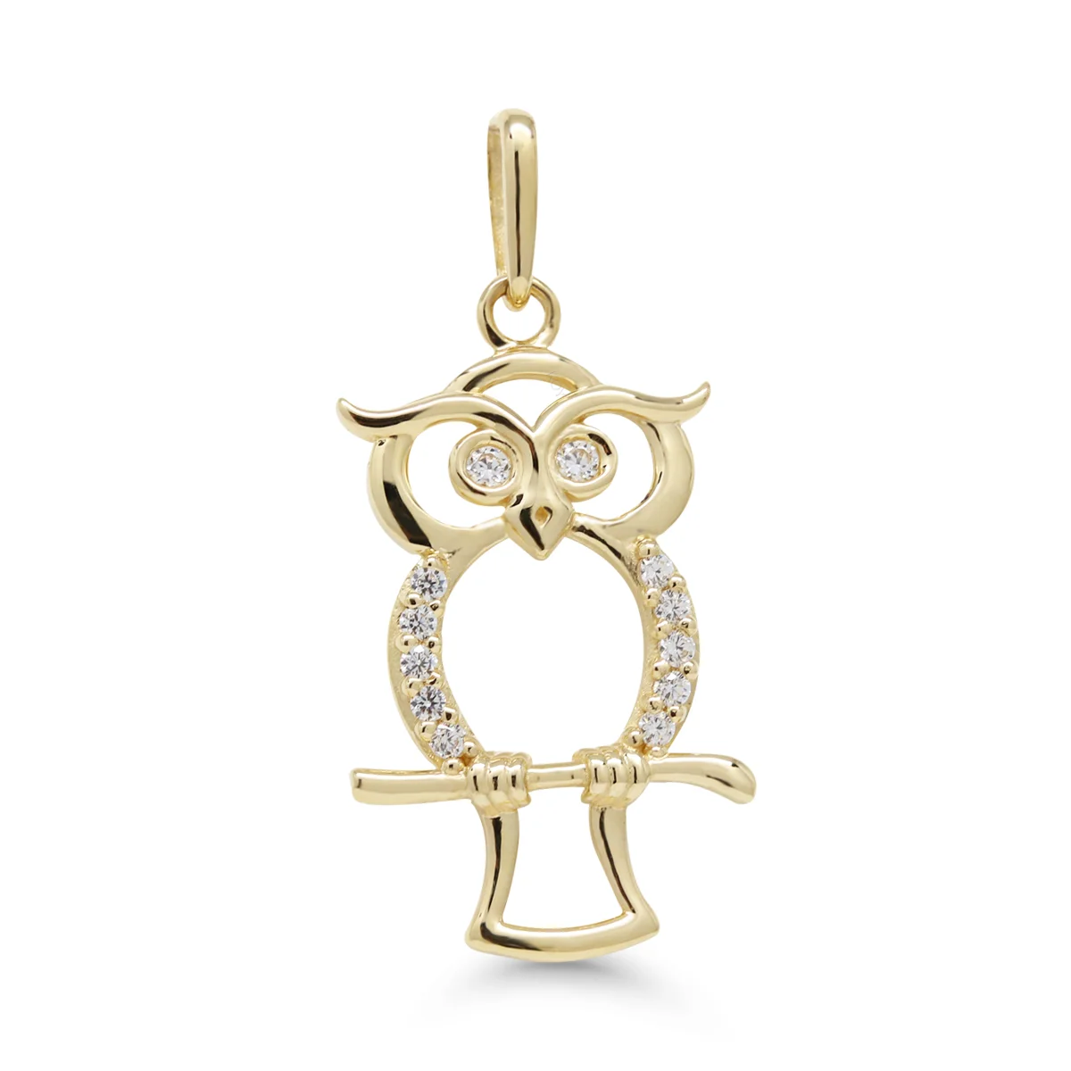 Keltakultainen pöllöriipus zirkoneilla – 14k