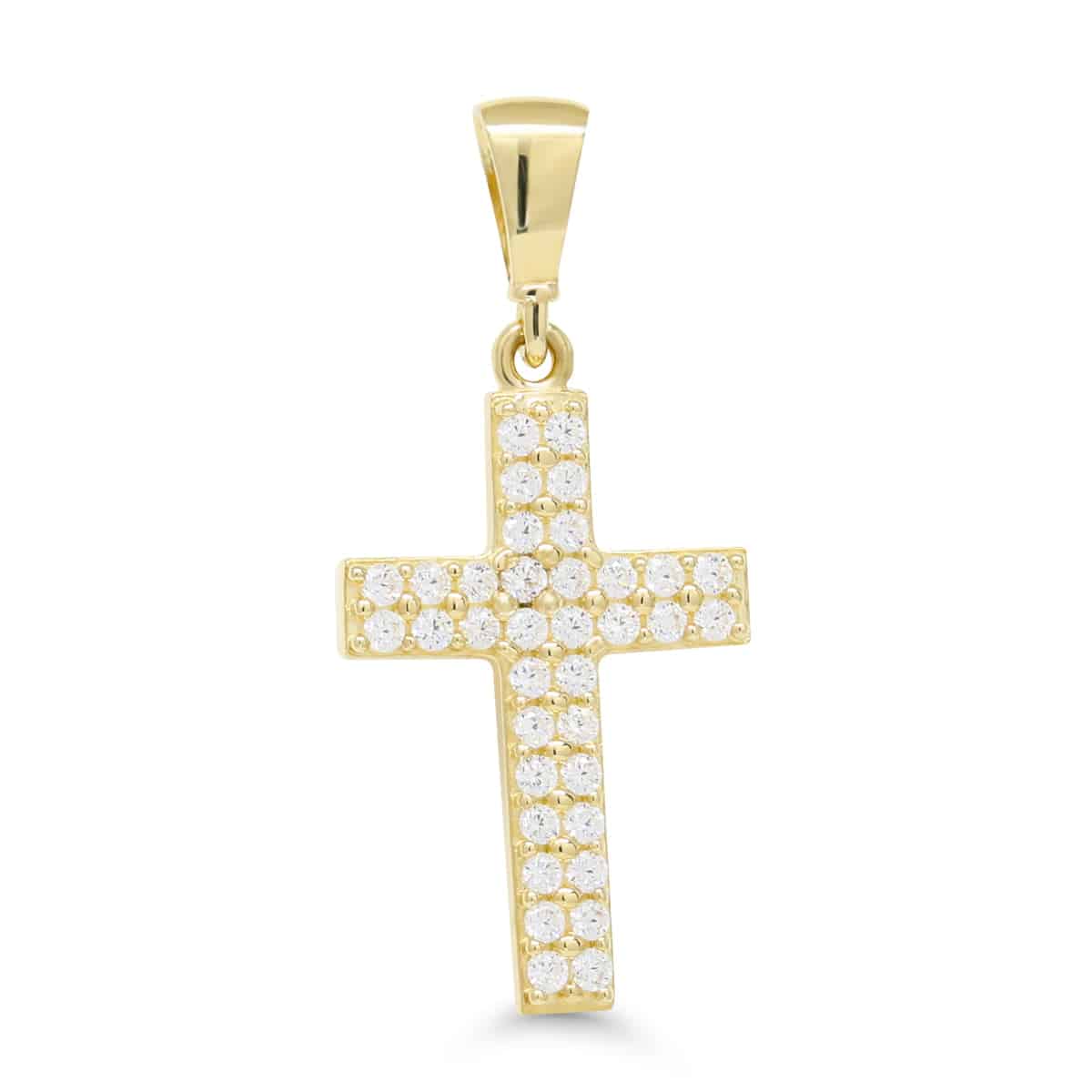 Keltakultainen ristiriipus 23mm zirkoneilla