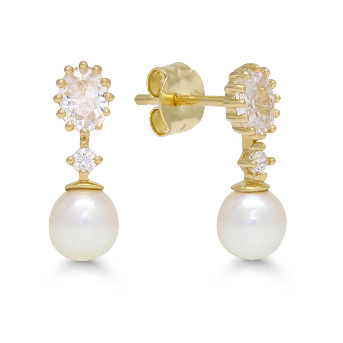Helmikorvakorut keltakullasta – klassinen yhdistelmä helmeä ja zirkonia
