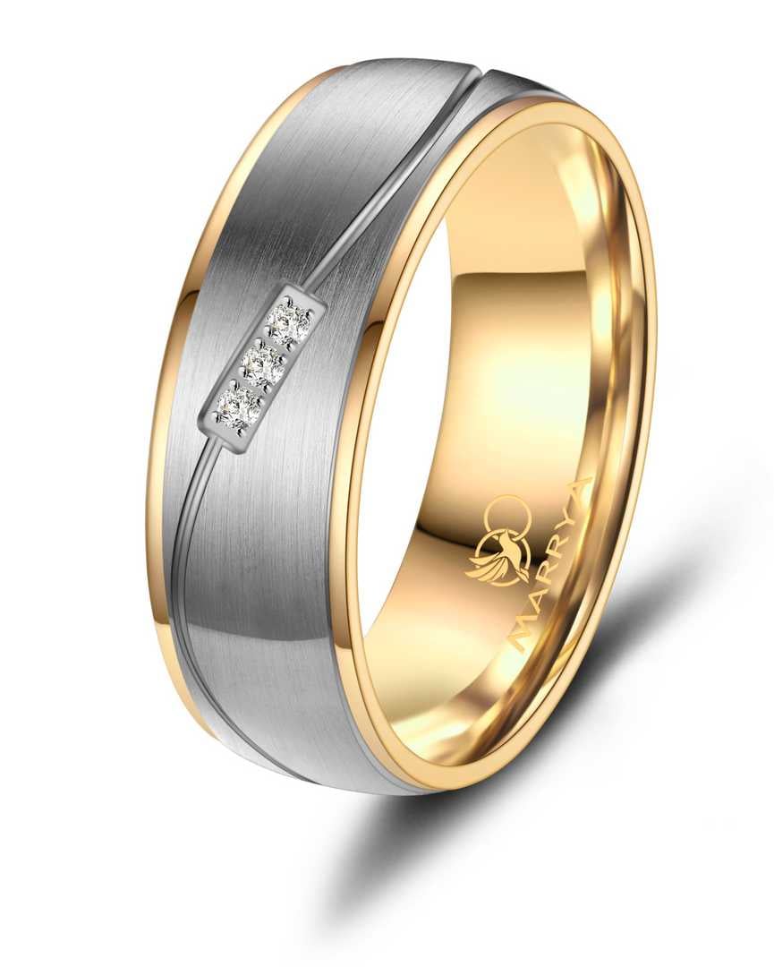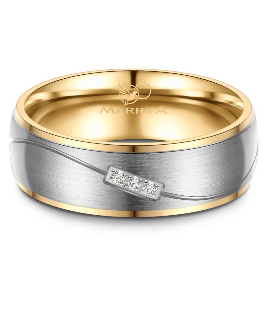 Tämä kullattu titaanisormus, jota koristaa kolme kauniisti asetettua cubic zirconia -kiveä, tuo sormukseen ripauksen näyttävyyttä kuitenkaan menettämättä modernia selkeyttään.