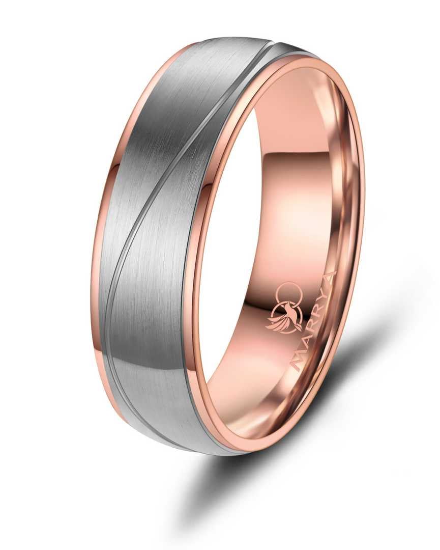 Ruusukultauksen lämmin sävy luo kauniin kontrastin titaanin modernille, viileälle ilmeelle, muodostaen elegantin kokonaisuuden, joka toimii sekä arjessa että juhlassa.