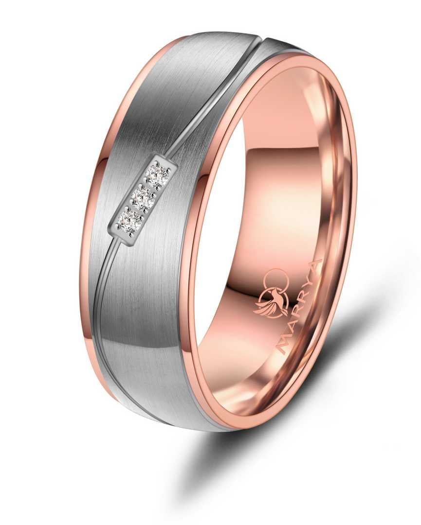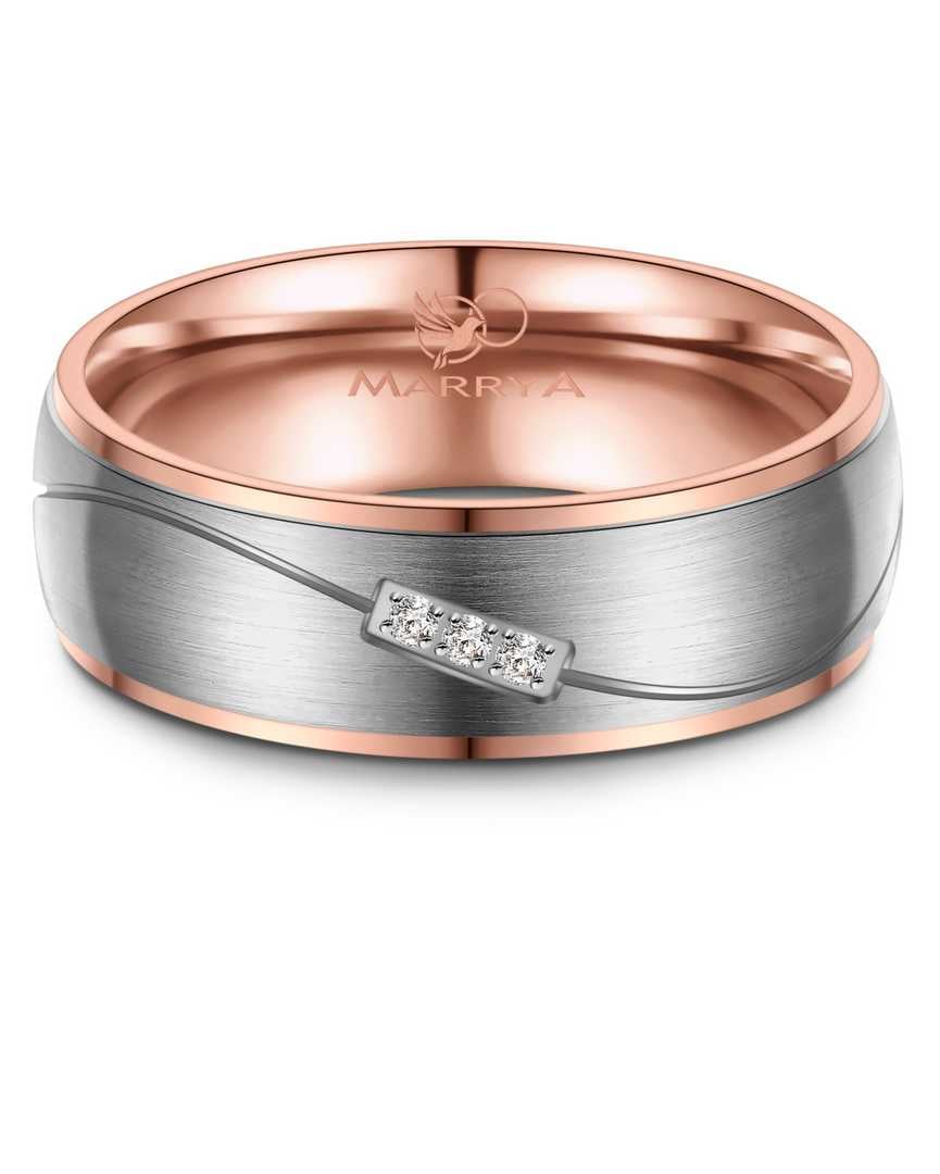 Kihlasormus titaania, ruusukultaus ja 3 x cubic zirkonia