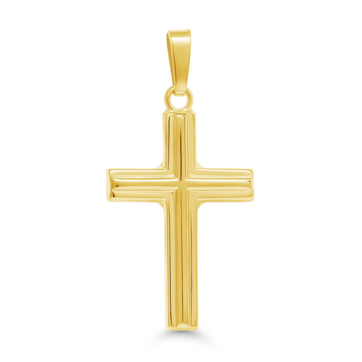 Ajattoman tyylikäs keltakultainen ristiriipus on valmistettu 14 karaatin keltakullasta ja viimeistelty elegantilla kiiltävällä pinnalla sekä uritetulla ristinmuotoilulla. Tämä risti huokuu arvokkuutta ja symboloi kauniisti uskoa ja merkitystä.
