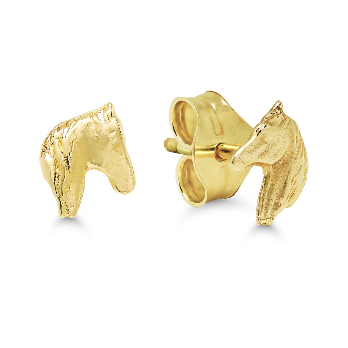 Nämä kultaiset hevosenpääkorvakorut ovat ihastuttava ja persoonallinen valinta erityisesti lapselle. Pieni, yksityiskohtainen hevosenpää-aihe ilahduttaa hevosista pitäviä, ja 5 mm koko tekee koruista sirot ja sopivan kokoiset lapsen korvalle.