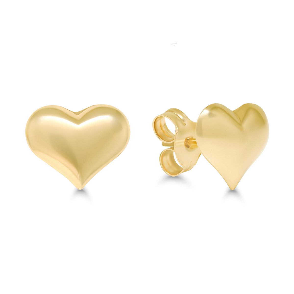Nämä kotimaiset sydämenmuotoiset kultakorvakorut ovat ajattoman tyylin ja tunteikkaan muotoilun täydellinen yhdistelmä. Korut on valmistettu 14 karaatin kierrätetystä kullasta, ja niiden 9 mm koko tekee niistä näyttävät mutta samalla elegantit – juuri sopivat arkeen tai juhlaan.
