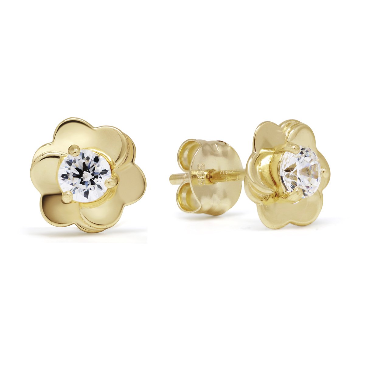 Kukka kultakorvakorut 14k keltakultaa zirkonilla