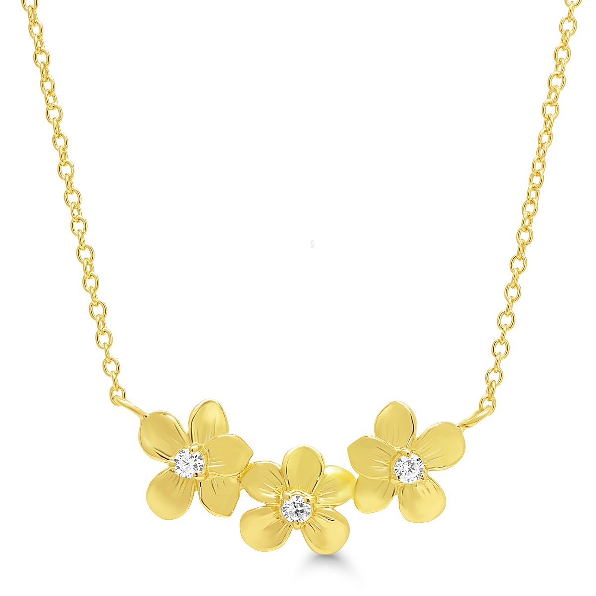 Tämä elegantti kullattu 925-hopeinen kaulakoru hurmaa herkällä ja romanttisella ilmeellään. Korun keskellä loistaa kolmen korun kauniisti muotoillun kukan kokonaisuus, jonka sydämessä kimaltelevat synteettiset zirkonit. Lopputulos on hienostunut, kevyt ja juuri sopivan näyttävä – täydellinen valinta niin arkeen kuin juhlaan.