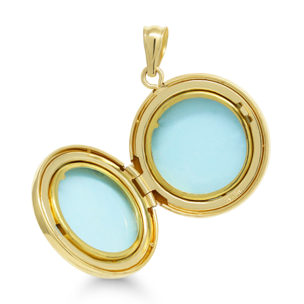 Kullattu pyöreä hopeamedaljonki – tilaa kahdelle kuvalle