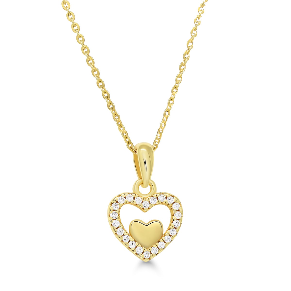 Kullattu Sydänkaulakoru Zirkoneilla – 925 Hopeinen Sydänriipus ja ketju 40–45 cm