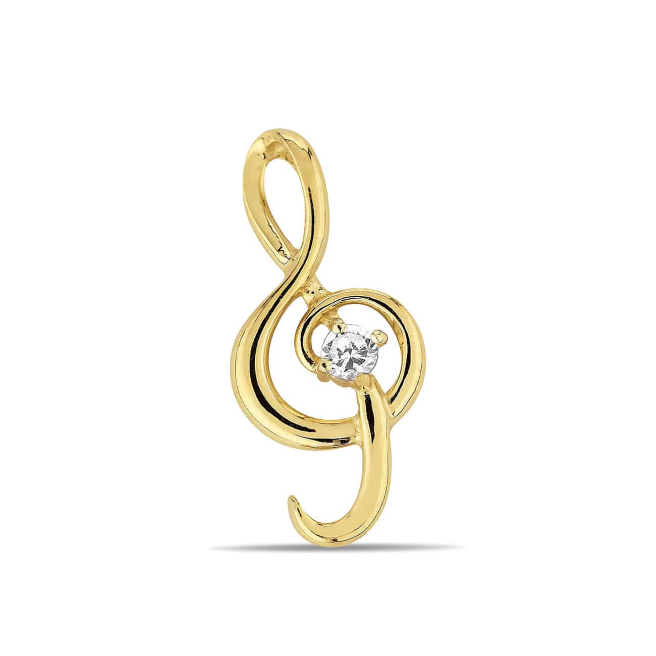Tämä elegantti nuottiavainriipus on täydellinen lahja musiikin ystävälle. Riipus on valmistettu 14 karaatin keltakullasta (585/1000), mikä antaa sille kauniin ja lämpimän sävyn. Riipuksen keskellä säihkyy kirkas synteettinen zirkoni, joka tuo ripauksen luksusta ja kiiltoa korun yksinkertaiseen mutta tyylikkääseen muotoiluun.