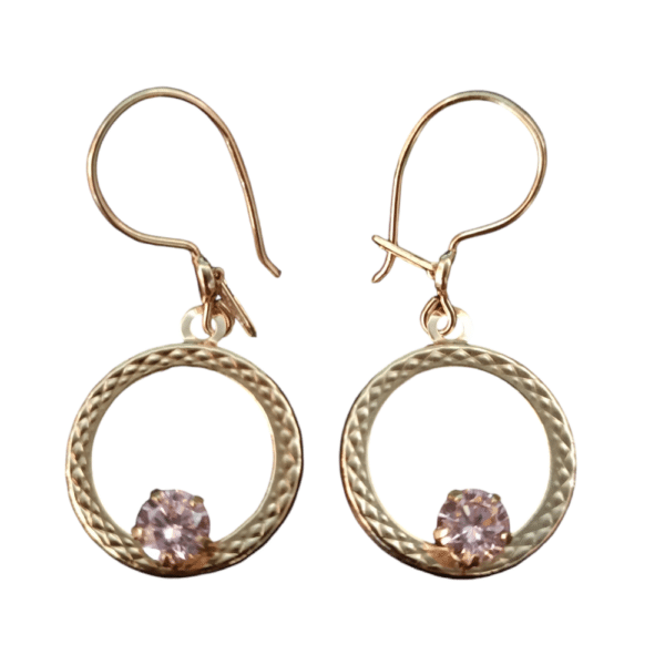 Kultaiset roikkuvat korvakorut vaaleanpunaisella zirkoniakivellä