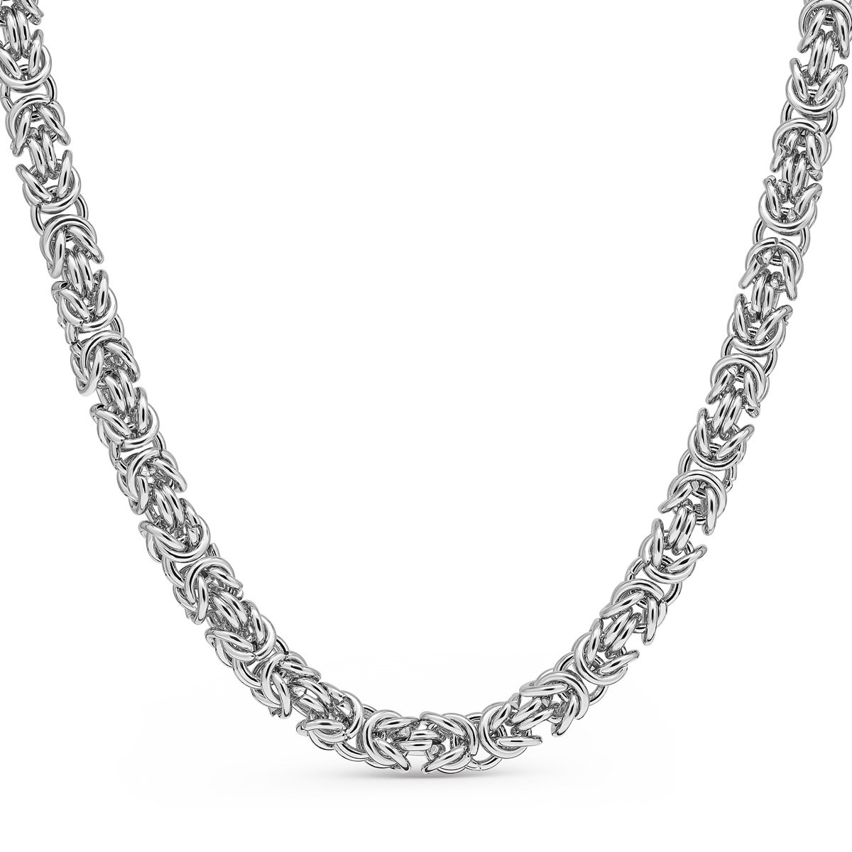 Tämä näyttävä teräksinen kuningasketju on todellinen katseenvangitsija. Sen klassinen bysanttilaisketjumalli, eli kuningasketju, henkii arvokkuutta ja voimaa, tarjoten samalla ajattoman ja tyylikkään ilmeen. 7mm x 7mm paksuinen ketju erottuu edukseen, luoden voimakkaan ja rohkean vaikutelman – täydellinen valinta, kun haluat korostaa yksilöllisyyttäsi. Ruostumattomasta teräksestä valmistettuna tämä ketju ei ainoastaan kestä aikaa ja kulutusta, vaan se on myös helppohoitoinen. Tämä näyttävä ketju sopii niin miehille kuin naisillekin, ja on loistava lisä sekä arjen että juhlan asukokonaisuuksiin.
