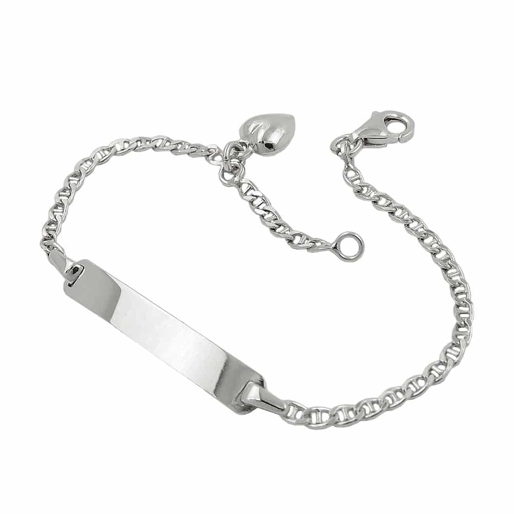 Hopeinen laattarannekoru lapselle tai vauvalle. Sopii kastelahjaksi tai 1v. lahjaksi. Ketjun pituus 12,5cm , tai jos lukon siirtää viimeiseen lenkkiin , 14cm.