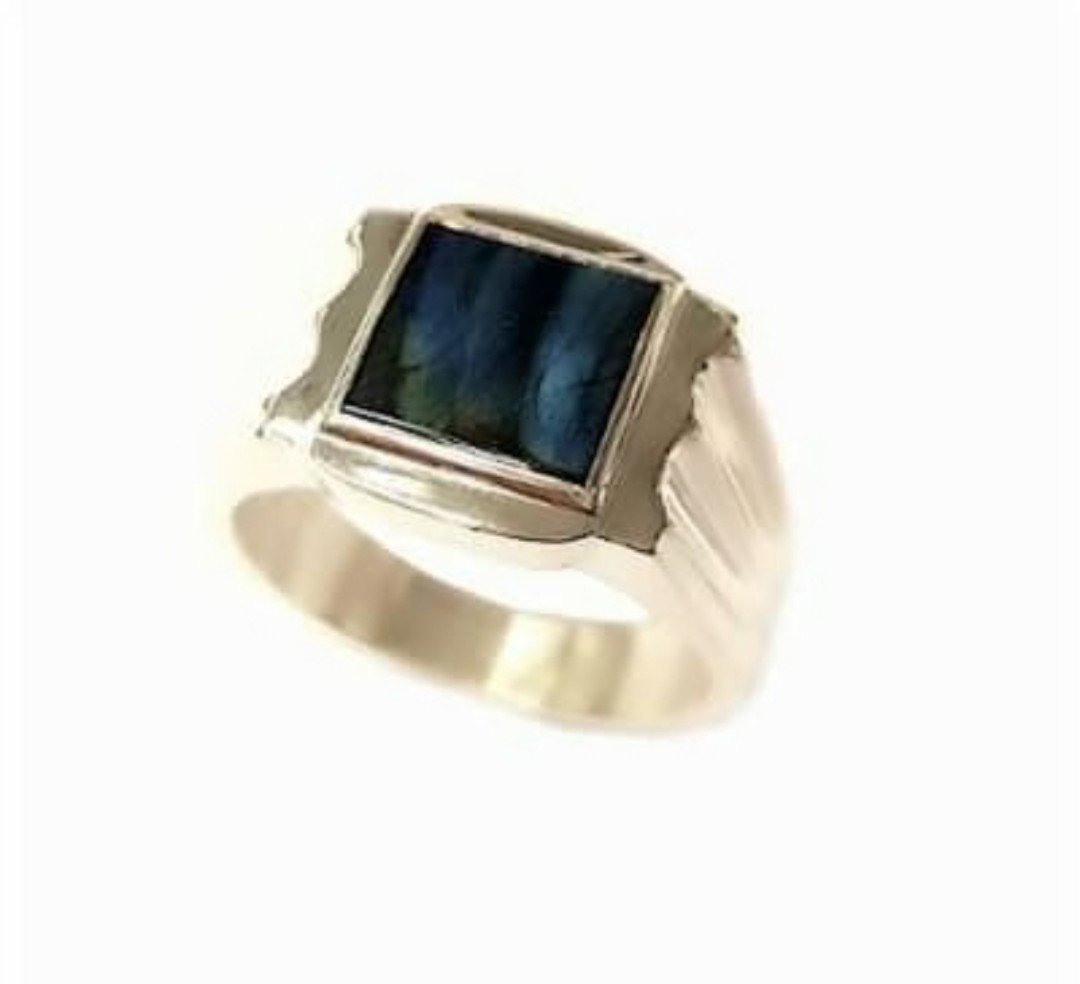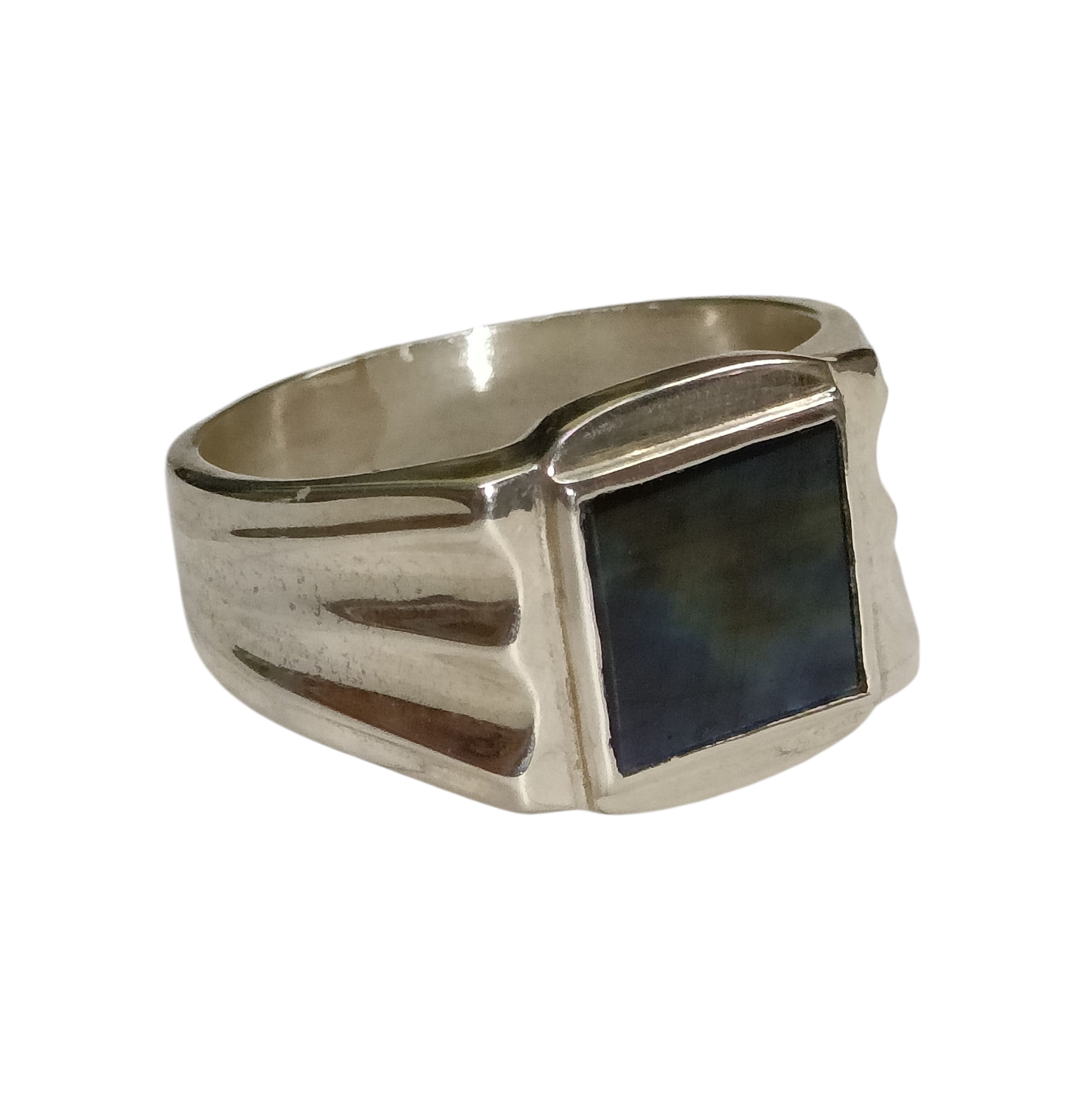 Miesten hopeinen kantasormus spektroliitti kivellä