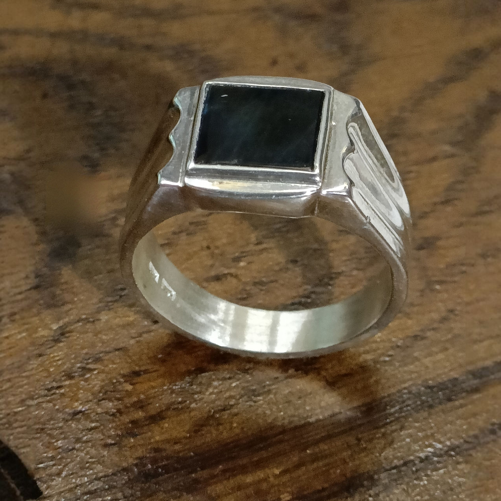 Massiivinen kantasormus istuu käteen jykevästi, ja sen tyylikäs muotoilu korostaa kivelle ominaisia valon heijastuksia. Tämä sormus on ajaton valinta miehelle, joka arvostaa kotimaista käsityötä, persoonallista designia ja laadukasta materiaalia.