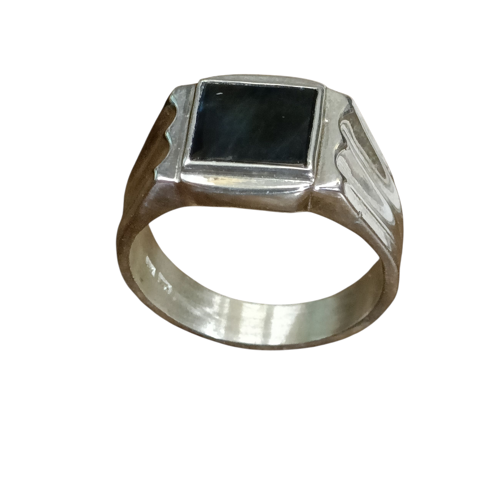 Tämä näyttävä miesten hopeasormus on valmistettu 100 % kierrätetystä 925-hopeasta, ja sen kruununa loistaa aito suomalainen spektroliitti. Spektroliitti on yksi Suomen tunnetuimmista jalokivistä, ja sen upea hohde vaihtelee yksilöllisesti sinisen, vihreän ja ruskean eri sävyissä – jokainen kivi on ainutlaatuinen.