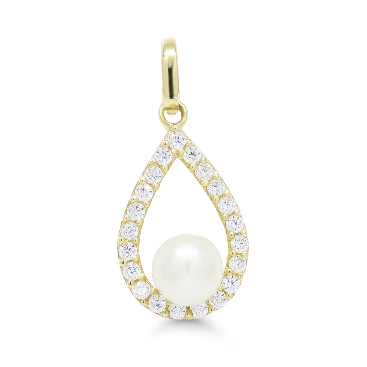 Pisaranmuotoinen kultariipus helmellä ja zirkoneilla
