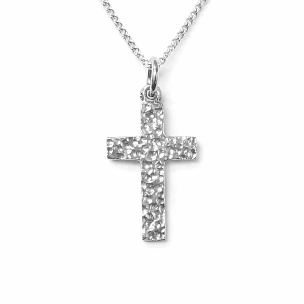 Tyylikäs ja persoonallinen hopeinen ristiriipus, jonka pinta muistuttaa kevyesti taottua pintaa. Elävä ja hieman epäsäännöllinen pintastruktuuri antaa korulle yksilöllisen ilmeen ja korostaa hopean kaunista kiiltoa.