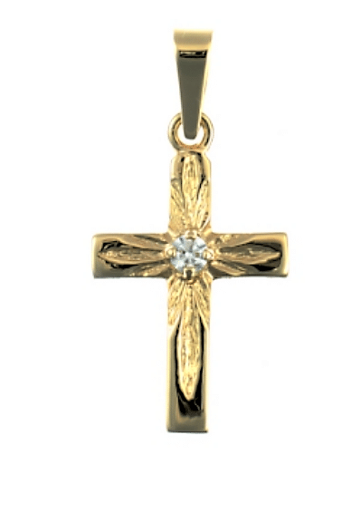 Kaunis ristiriipus, jossa keskellä kirkas zirkonikivi. Sopii hyvin rippiristiksi tytölle.