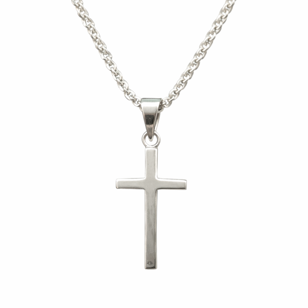 Ajaton ja elegantti hopeinen ristiriipus on klassinen koru, joka symboloi uskoa, toivoa ja suojaa. Kiiltävä viimeistely antaa korulle hillityn mutta arvokkaan ilmeen, joka sopii täydellisesti sekä arkeen että juhlavampiin hetkiin.