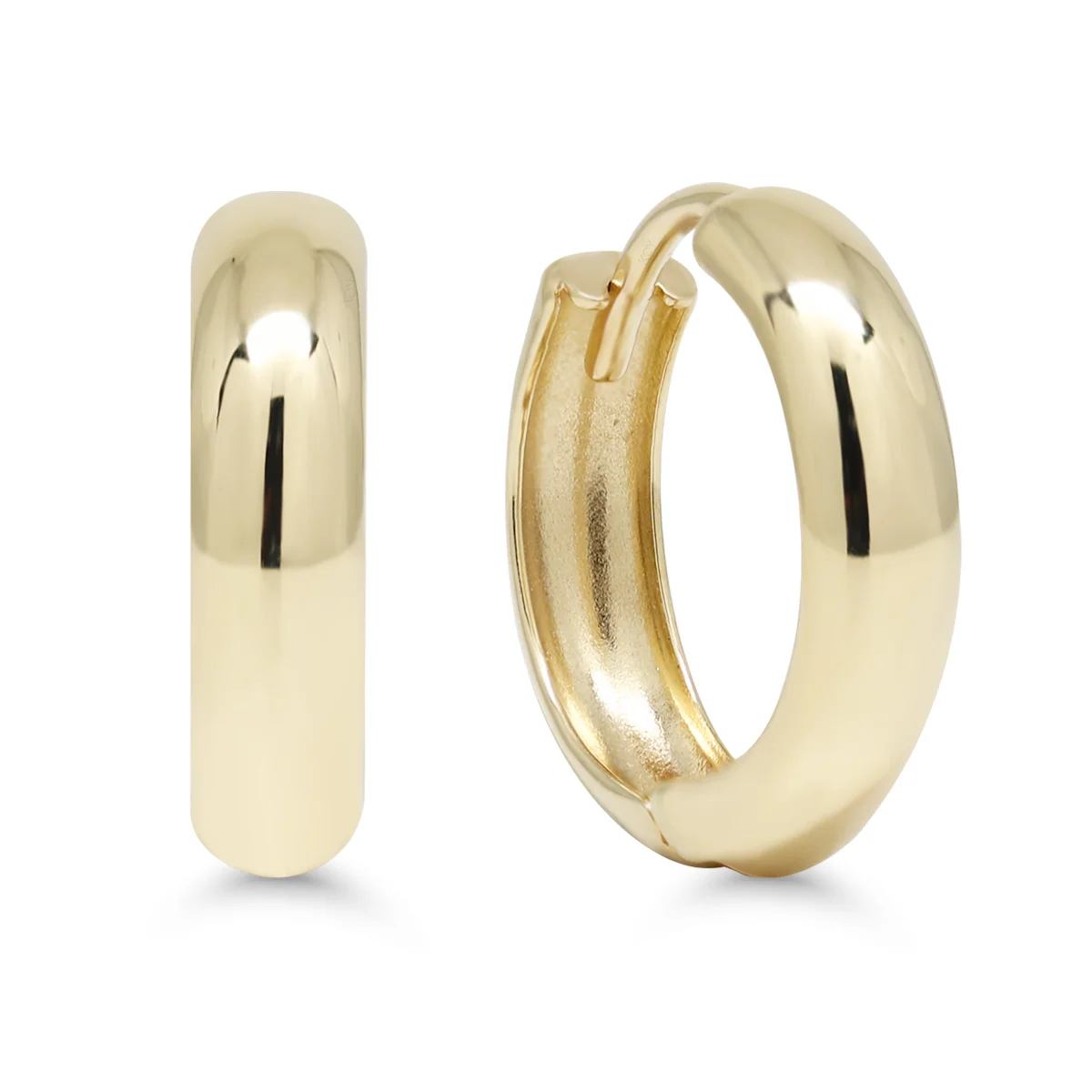 Ajattoman tyylikkäät 14 karaatin keltakultaiset korvarenkaat täydentävät asun kuin asun. Näiden saranallisten korvakorujen sileä ja kiiltävä pinta heijastaa valoa kauniisti, luoden klassisen ja hienostuneen ilmeen. Korvarenkaiden koko tekee niistä mukavat päivittäiseen käyttöön, mutta ne sopivat yhtä hyvin myös juhla-asusteeksi.