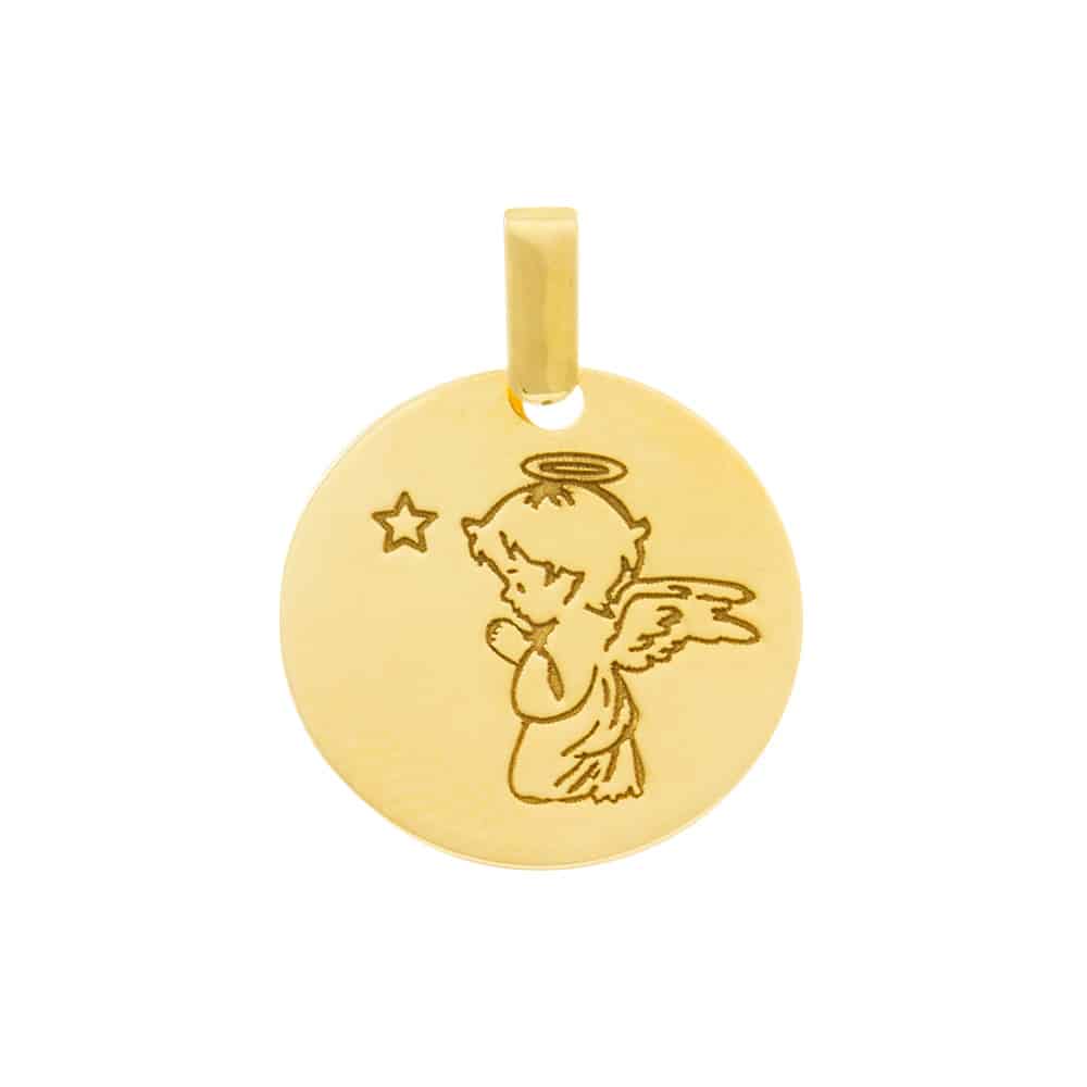 Tämä kaunis suojelusenkeli riipuslaatta on täydellinen ja merkityksellinen lahja erityisiin hetkiin, kuten kastelahjaksi, nimiäisiin tai rippilahjaksi. Riipuksen halkaisija on 15 mm, ja se on valmistettu laadukkaasta 9 karaatin kullasta (375), joka säilyttää arvokkaan kiiltonsa ajan myötä. Riipus on tyylikkään yksinkertainen, ja sen taakse voi kaivertaa henkilökohtaisen viestin tai päivämäärän, enintään 18 merkkiä välilyönnit mukaan lukien, tehden siitä ainutlaatuisen ja tunteikkaan lahjan.