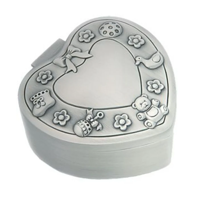 Tämä suloinen sydämenmuotoinen korurasia on suunniteltu säilyttämään elämän arvokkaimmat muistot. Vauva-aiheinen koristelu tekee siitä erityisen merkityksellisen lahjan kaste- tai nimiäispäivään – hetkiin, jotka ansaitsevat tulla muistetuksi vuosien ajan.