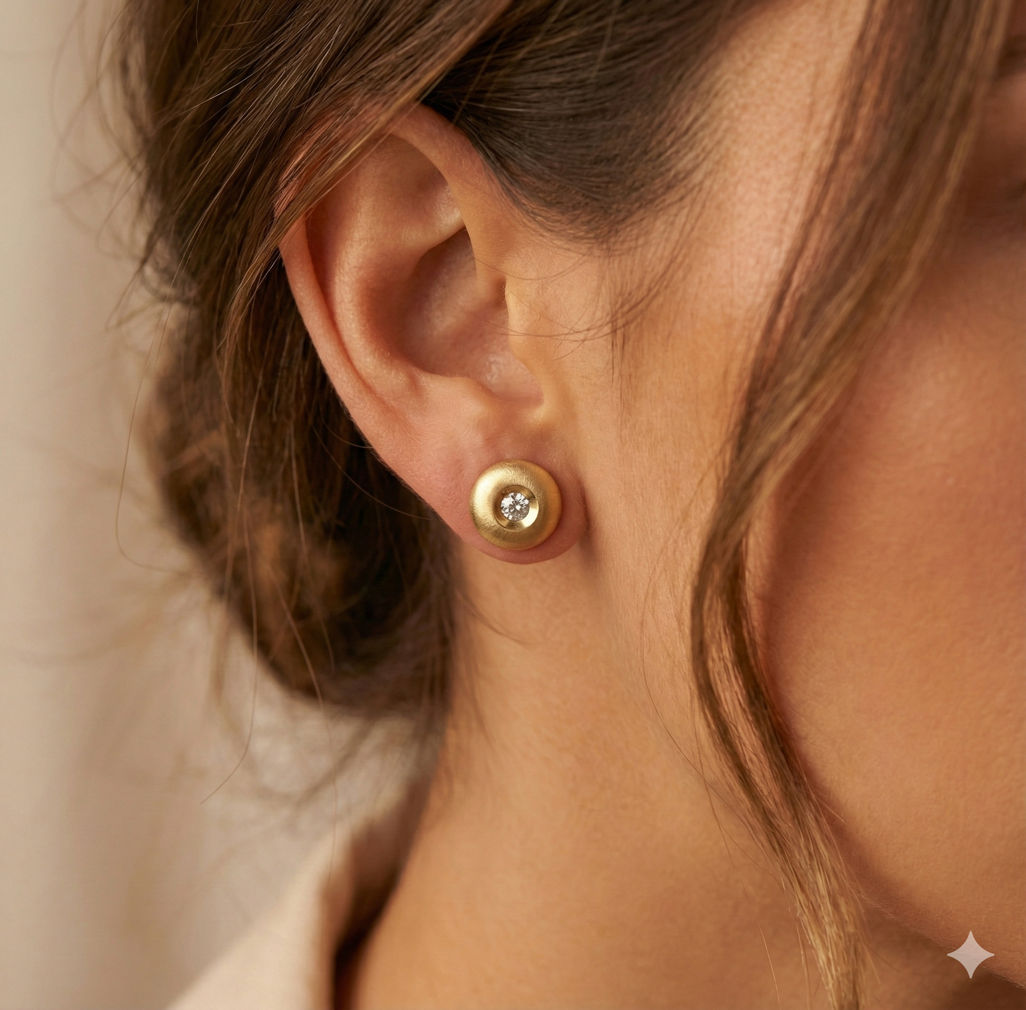Kultaiset Timanttikorvakorut 14k – Mattapinta – 0,12 ct W/SI – Vintage – 8 mm 1970-luku