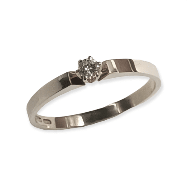 Upea käsityönä tehty flakka mallinen timanttisormus , jossa laadukas 0,05ct briljanttihiontainen timantti.