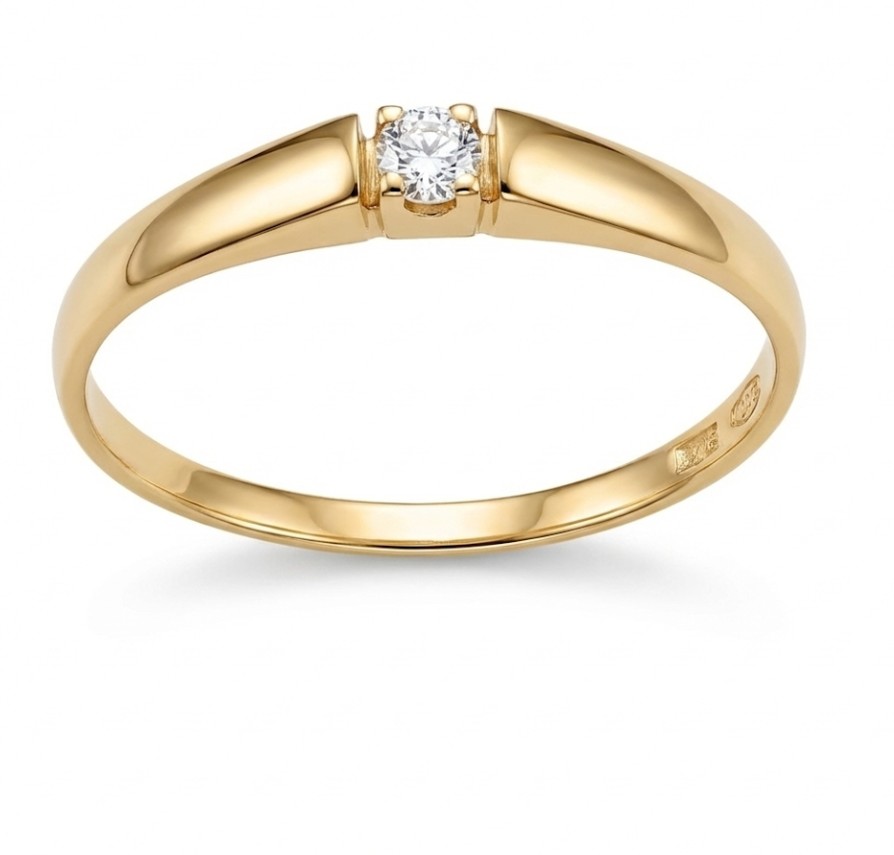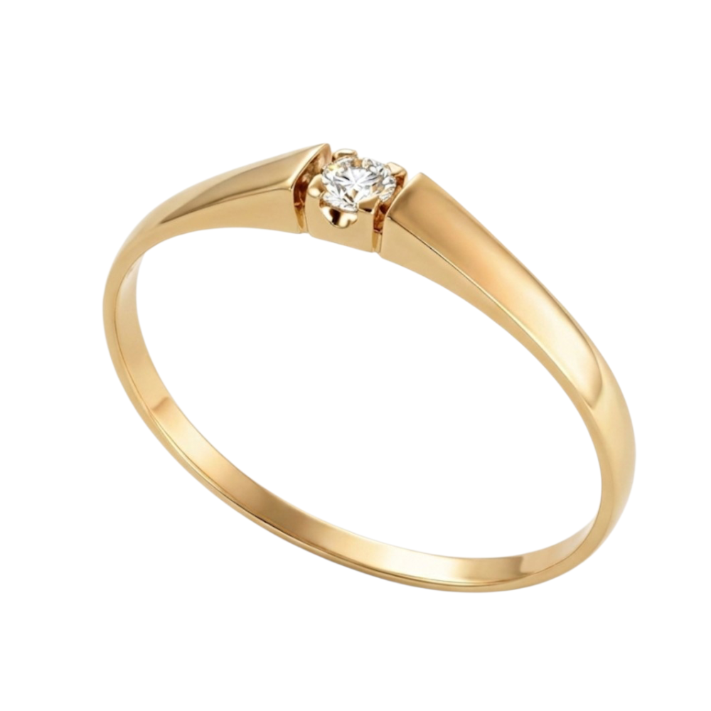 Kotimainen 14K kultainen timanttisormus, jossa yksi 0,05 ct timantti