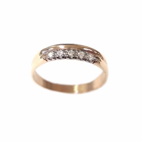 Kaunis ja perinteinen kultainen timanttisormus viidellä timantilla.