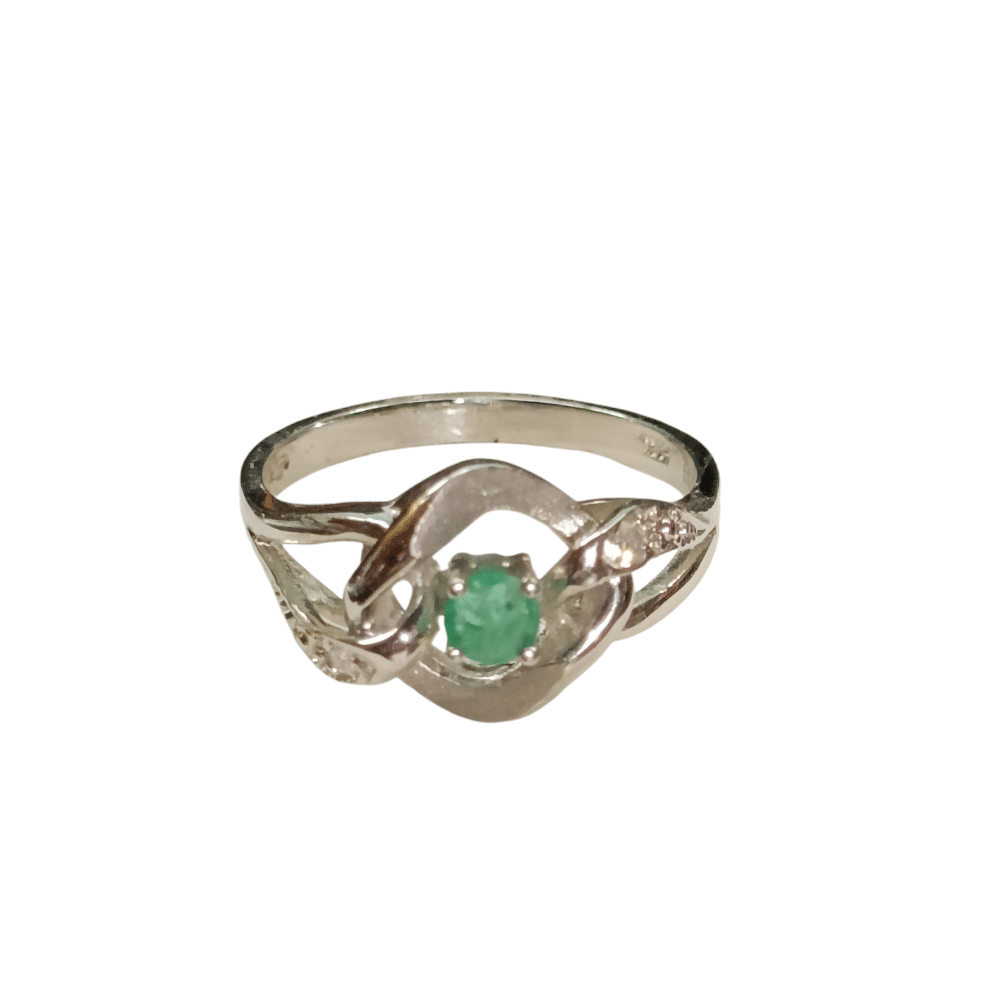 Valkokultainen Vintage Sormus Smaragdilla ja Timanteilla