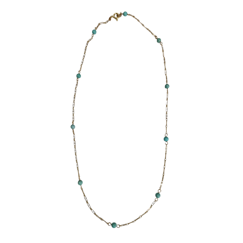 Vintage 14k kultainen kaulakoru turkoosihelmillä – 1960–70-luku, 45 cm