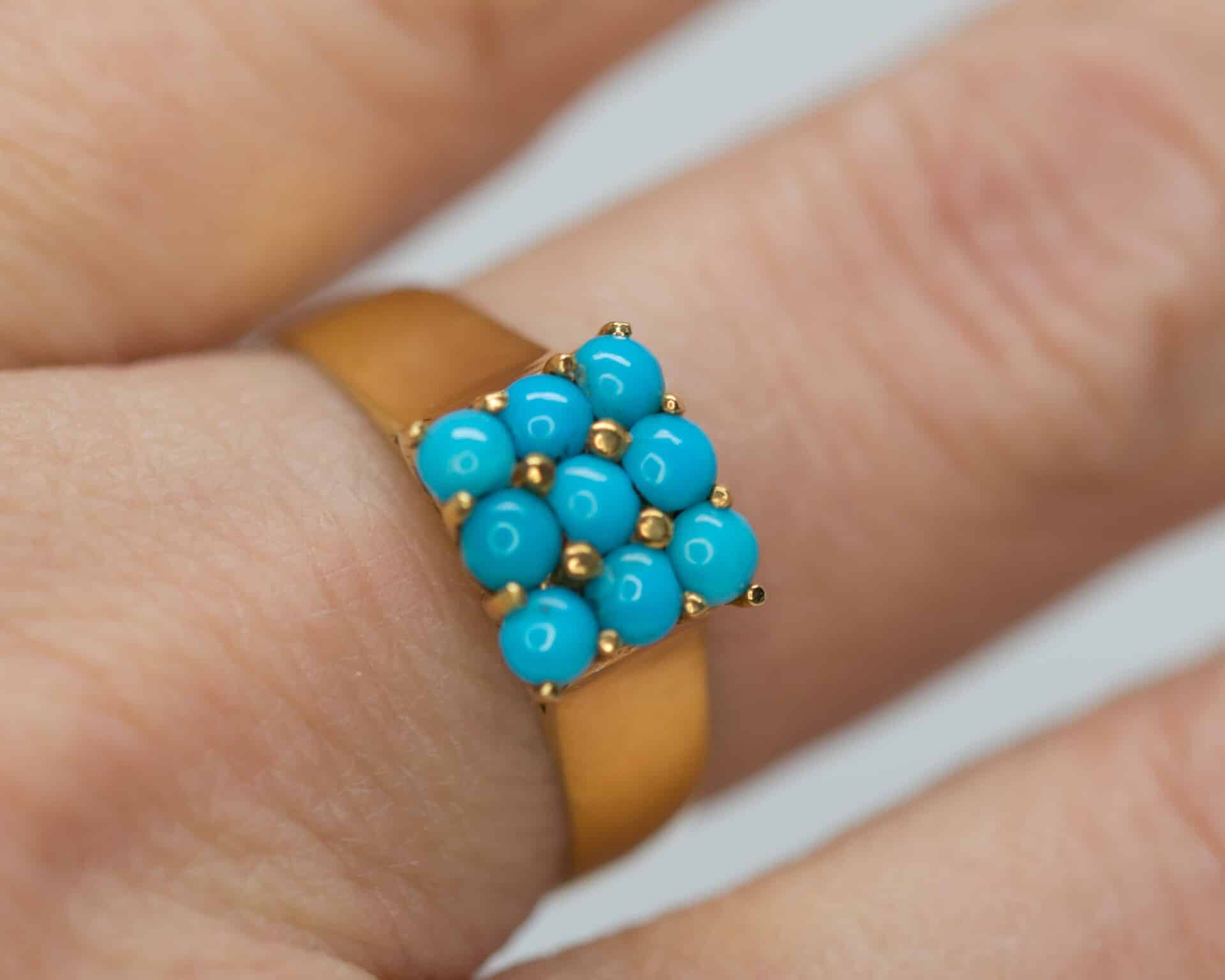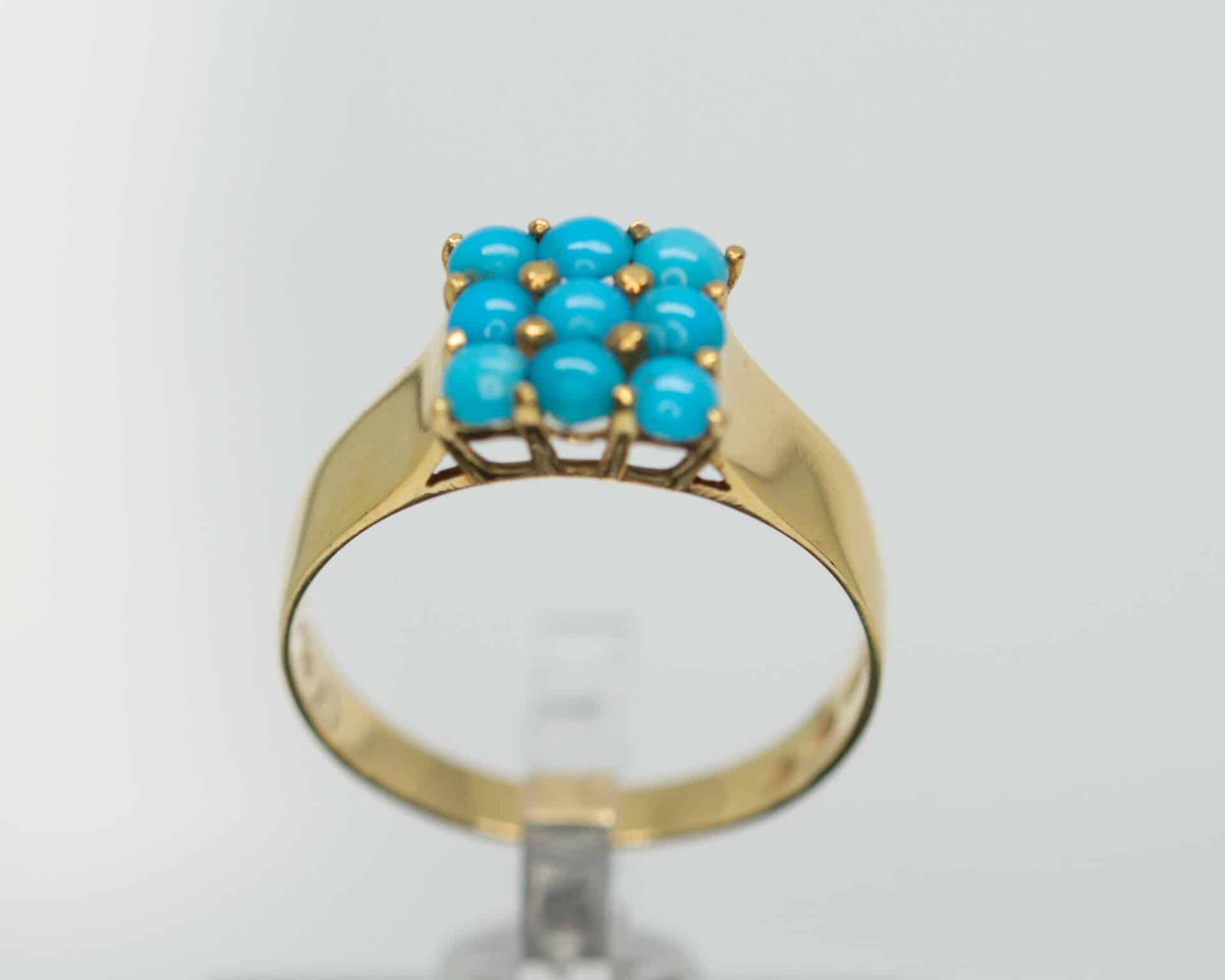 Upea vintagesormus jossa 9kpl pieniä turkoosikiviä. Sormus on käyttämätön , kultasepänliikkeen vanhaa varastoa.