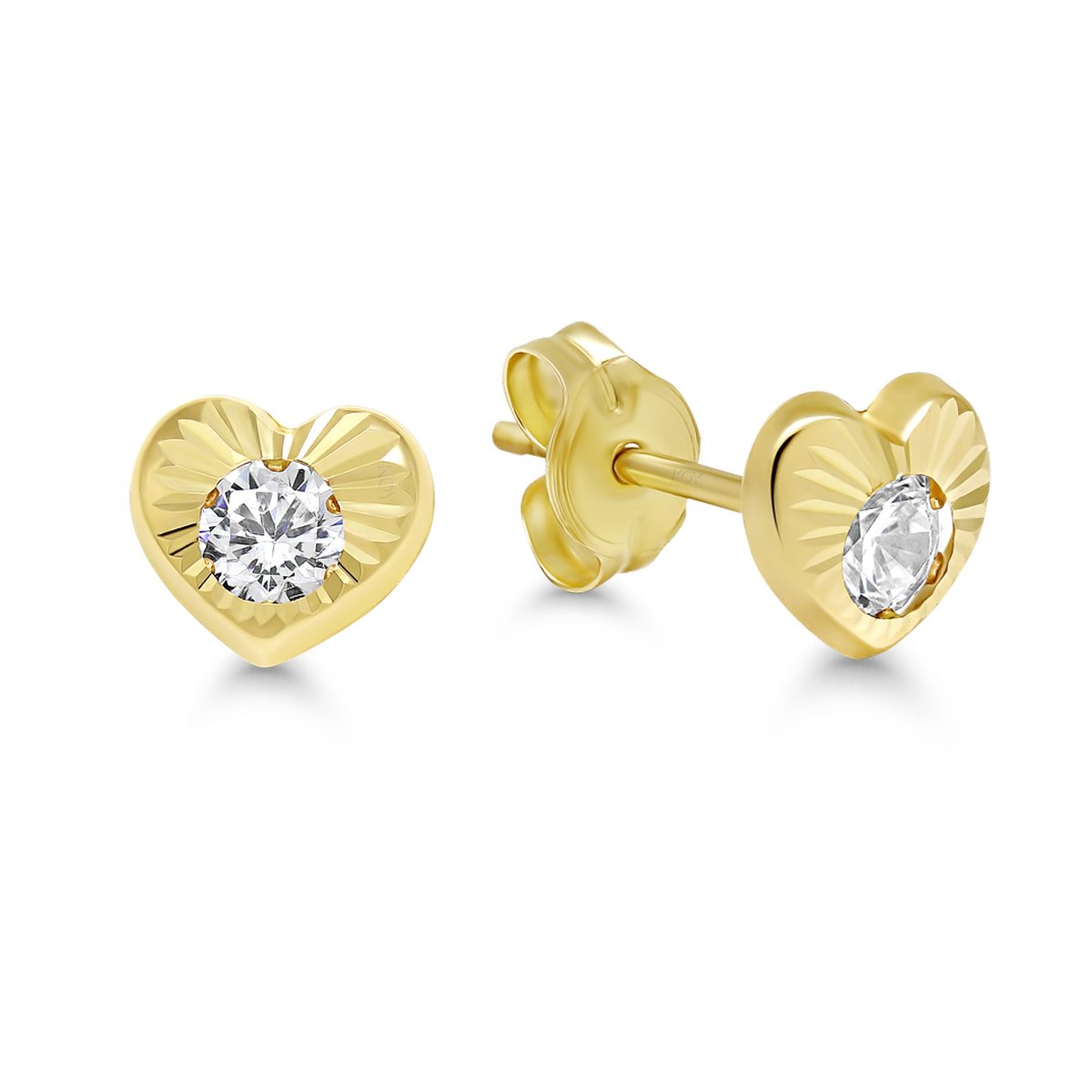 Keltakultaiset sydänkorvakorut zirkoneilla