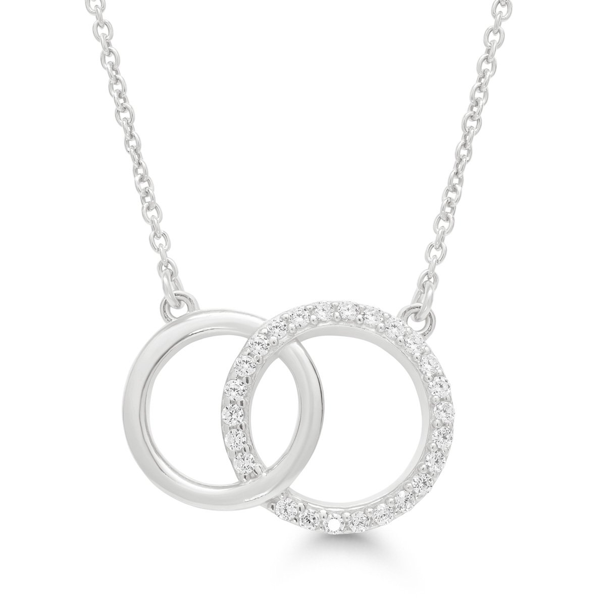 Hopeinen kaulakoru zirkoneilla – kaksi toisiinsa kietoutuvaa rengasta